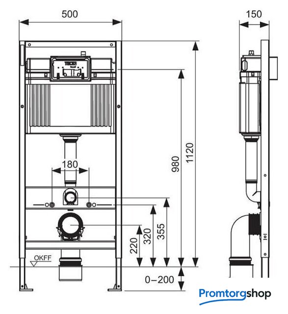 | Отверстия под инсталляцию | 180 мм |