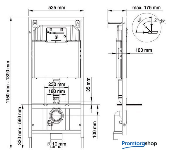 | Отверстия под инсталляцию | 180 мм |