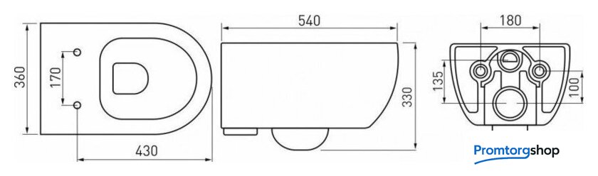 | Отверстия под инсталляцию | 180 мм |