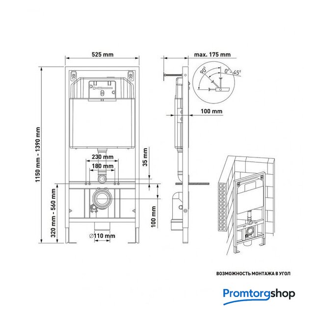 | Отверстия под инсталляцию | 180 мм |