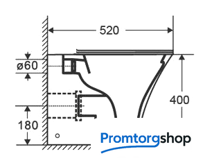 приставной, конструкция: без бачка, задний подвод воды, горизонтальный выпуск, с сиденьем