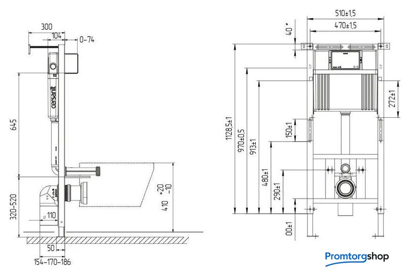 | Отверстия под инсталляцию | 180 мм, 210 мм, 230 мм |
