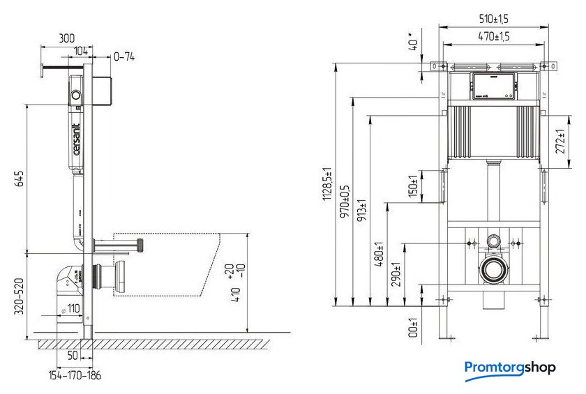 | Отверстия под инсталляцию | 180 мм, 210 мм, 230 мм |