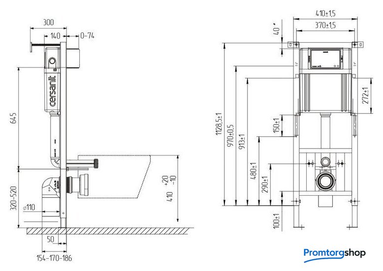 | Отверстия под инсталляцию | 180 мм |
