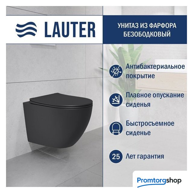 Унитаз подвесной Lauter Augsburg 21109EC + 21901002 (кнопка круглая, черный)