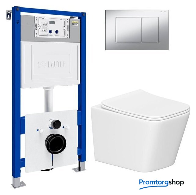 Унитазы Lauter Lauter Square 214903 с кнопкой 219703J (прямоугольная, сатин) Код товара: 11054981
