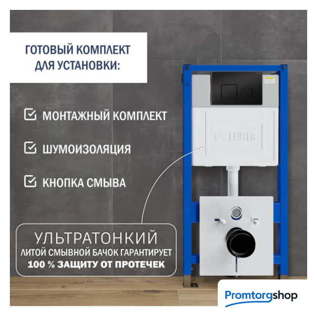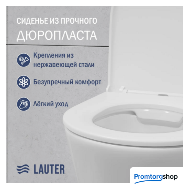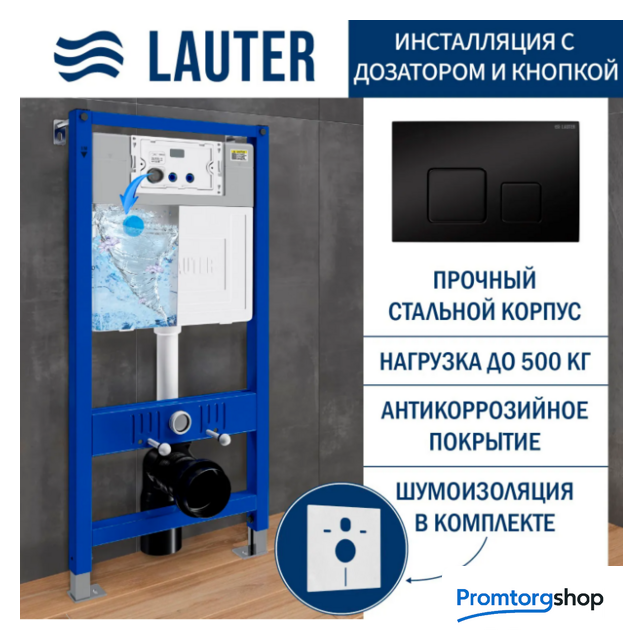 | Конструкция | унитаз подвесной с инсталляцией + в комплекте крепления, шумоизоляция. Дозатор для гигиенических таблеток.Подвесной унитаз — это воплощение вневременного дизайна. С унитазом Lauter ваше помещение всегда будет выглядеть по-особенному! Чаша унитаза оснащена сиденьем в тон керамики, форма которого обеспечивает максимальное удобство для людей разного возраста и комплекции. Благодаря быстросъемной системе, вы можете установить или снять сиденье вместе с крышкой всего за несколько секунд, не используя специальные инструменты. Сиденье для унитаза изготовлено из дюропласта — материала с исключительно жесткой и низкопористой структурой. Это препятствует скоплению и размножению микроорганизмов. Гладкая поверхность сиденья не задерживает пыль и грязь, а для ухода за ним достаточно регулярно протирать его влажной салфеткой с неабразивным моющим средством. Корпус инсталляции Lauter произведен из стали и покрыт прочной порошковой краской для защиты от коррозии. В комплект входит изолированный бачок скрытого монтажа. Доступ к коммуникациям бачка осуществляется через ревизионное отверстие смывной клавиши. Регулируемые по высоте выдвижные опоры. Кнопка смыва механическая с ручным управлением. Практичная клавиша Lauter придает индивидуальности вашему интерьеру. Выполнена из высококачественного пластика. |
