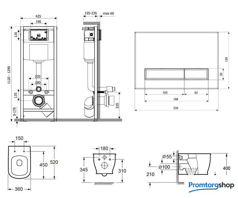 подвесной, конструкция: без бачка, двухрежимный слив по цене 1 291,00 руб.