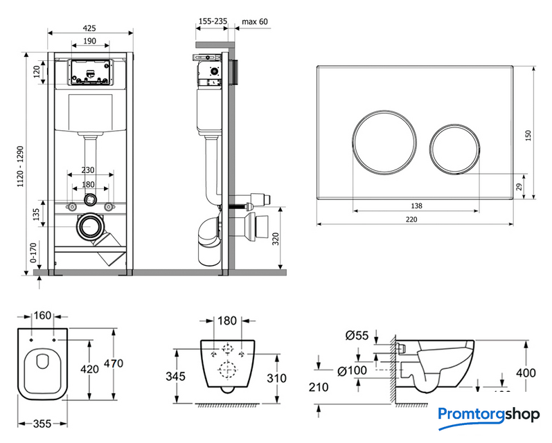подвесной, конструкция: без бачка, двухрежимный слив по цене 1 091,00 руб.