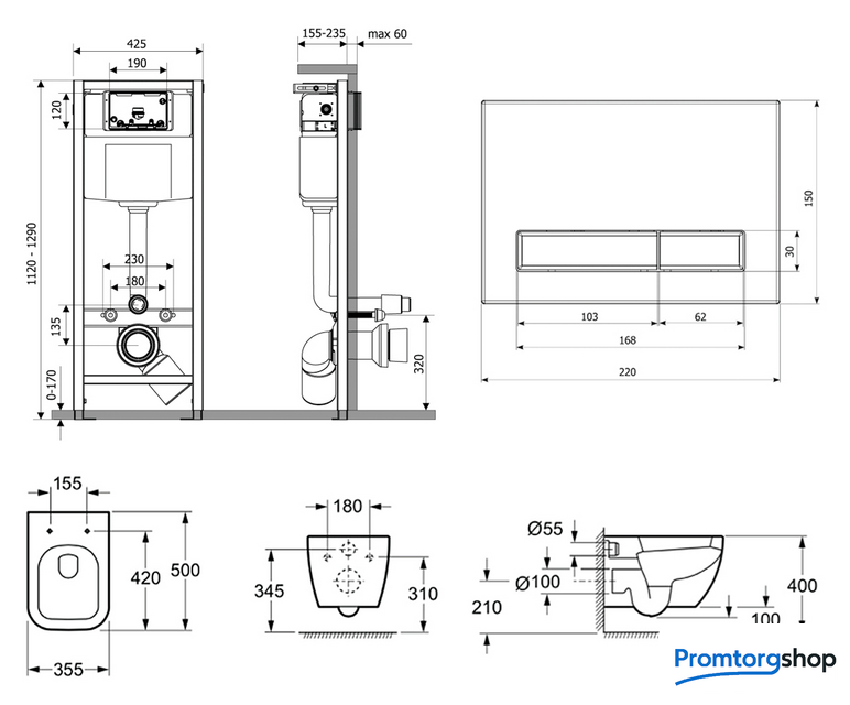 подвесной, конструкция: без бачка, двухрежимный слив по цене 1 181,00 руб.