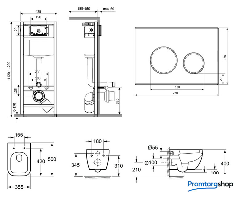 подвесной, конструкция: без бачка, двухрежимный слив по цене 1 345,00 руб.