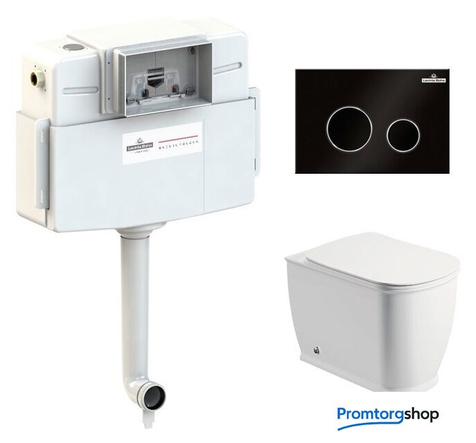 приставной, низкорасположенный бачок, задний подвод воды, универсальный выпуск, двухрежимный слив, с сиденьем