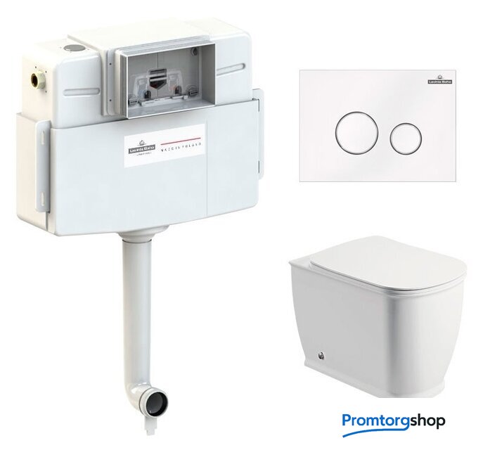 приставной, низкорасположенный бачок, задний подвод воды, универсальный выпуск, двухрежимный слив, с сиденьем