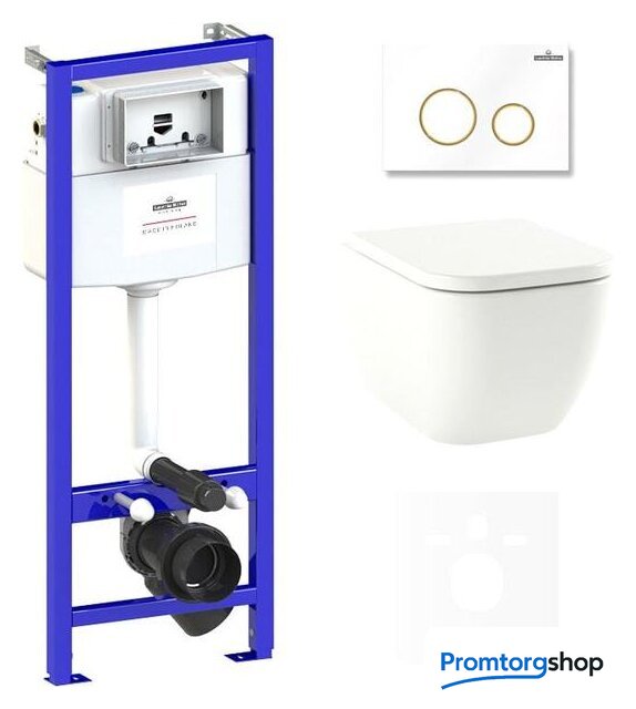 Унитаз подвесной Lavinia Boho Relfix One Compacto 6 в 1 75110081 (белый/золотистый пластик)