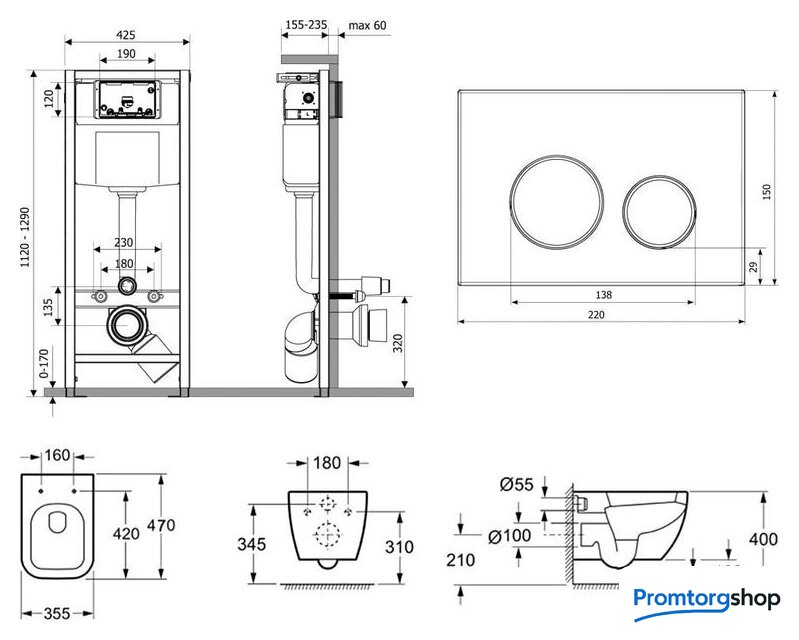 подвесной, конструкция: без бачка, двухрежимный слив по цене 1 345,00 руб.
