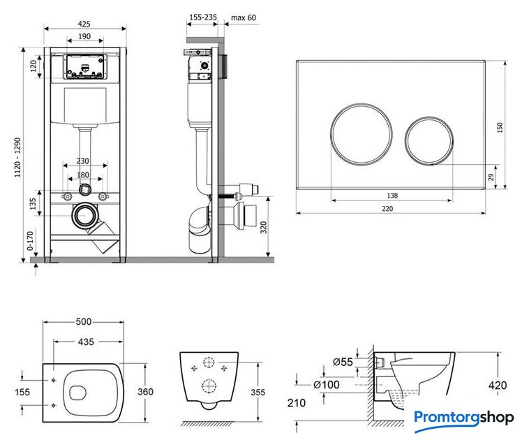 подвесной, конструкция: без бачка, двухрежимный слив по цене 1 138,00 руб.