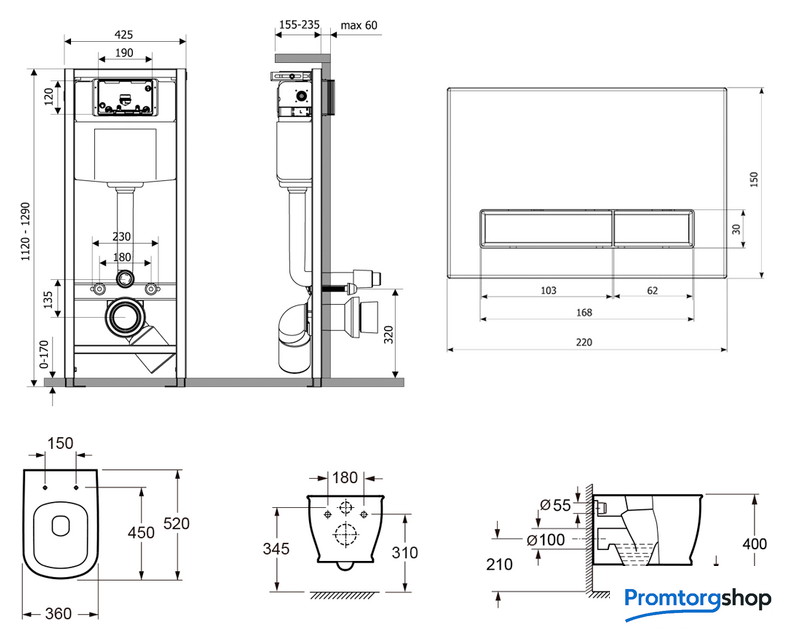 подвесной, конструкция: без бачка, двухрежимный слив по цене 1 367,00 руб.