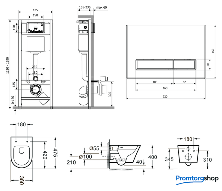 подвесной, конструкция: без бачка, двухрежимный слив по цене 1 135,00 руб.