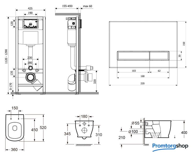 подвесной, конструкция: без бачка, двухрежимный слив по цене 1 385,00 руб.
