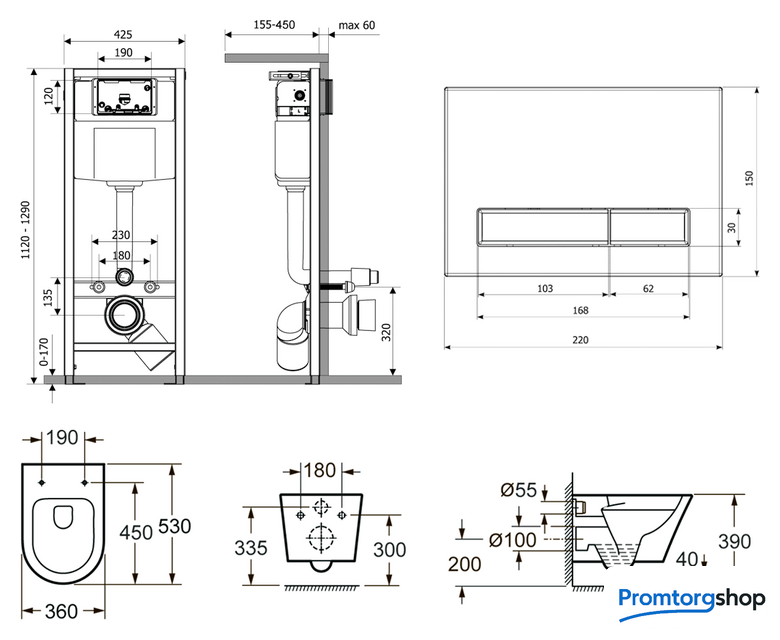 подвесной, конструкция: без бачка, двухрежимный слив по цене 1 450,00 руб.