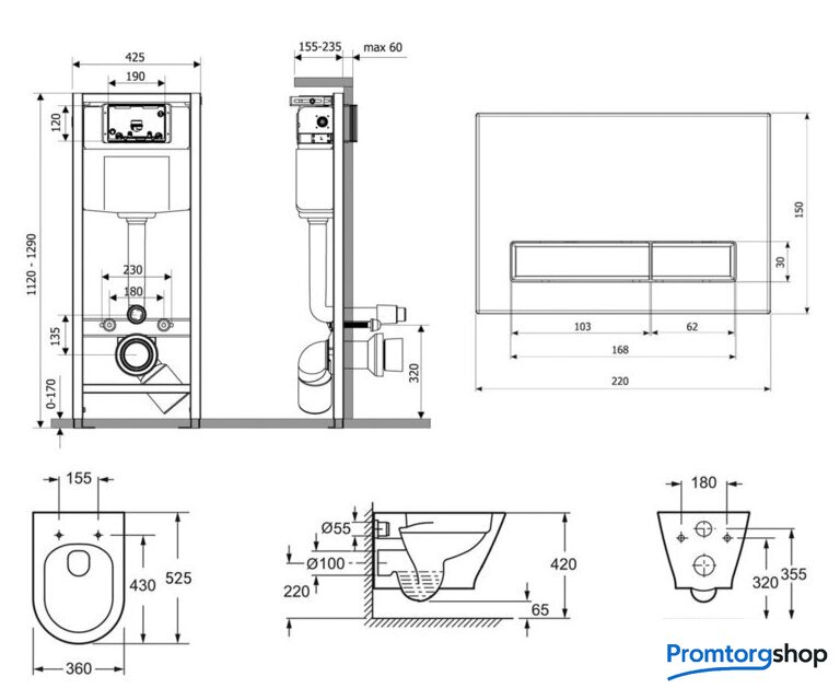 | Кнопка смыва | (белый/светлое дерево пластик) |