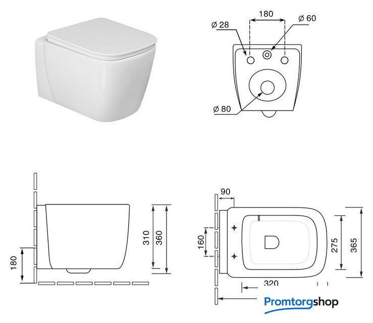 подвесной, задний подвод воды, горизонтальный выпуск, двухрежимный слив, с сиденьем, безободковый