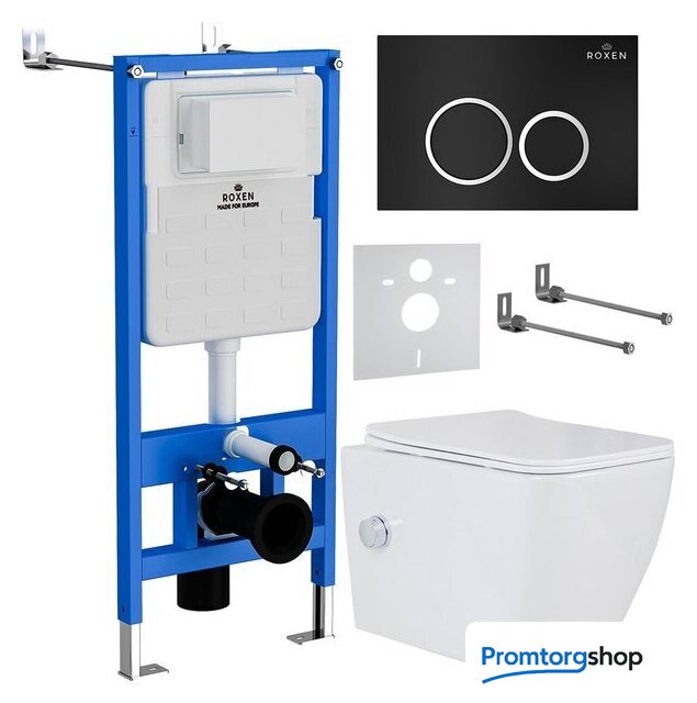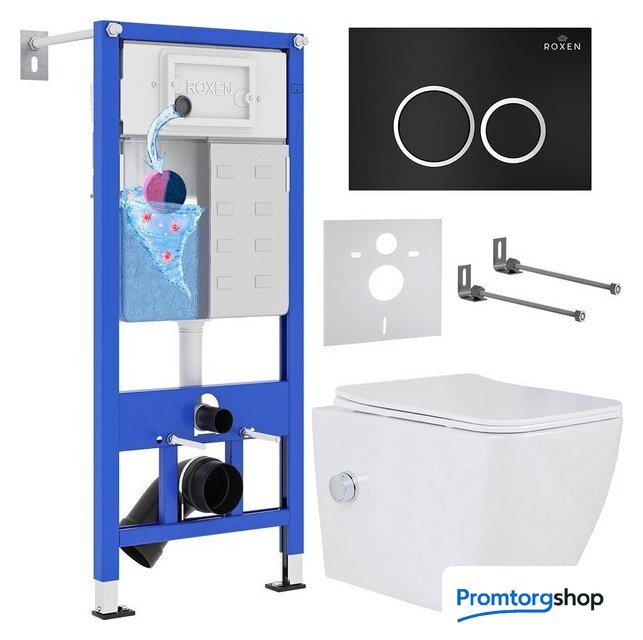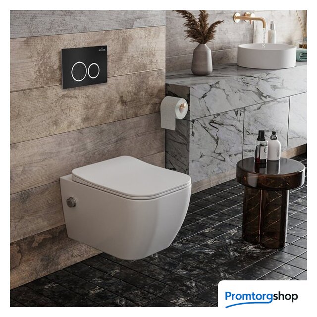 Унитазы Roxen Roxen Cube Bidet One Rimless 6 в 1 StounFix Dual Fresh 508149 (кнопка: черный матовый) Код товара: 9180968