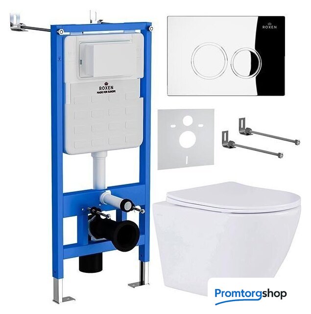 Унитаз подвесной Roxen Antares One Rimless 6 в 1 StounFix Dual Fresh 508565 (кнопка: хром)