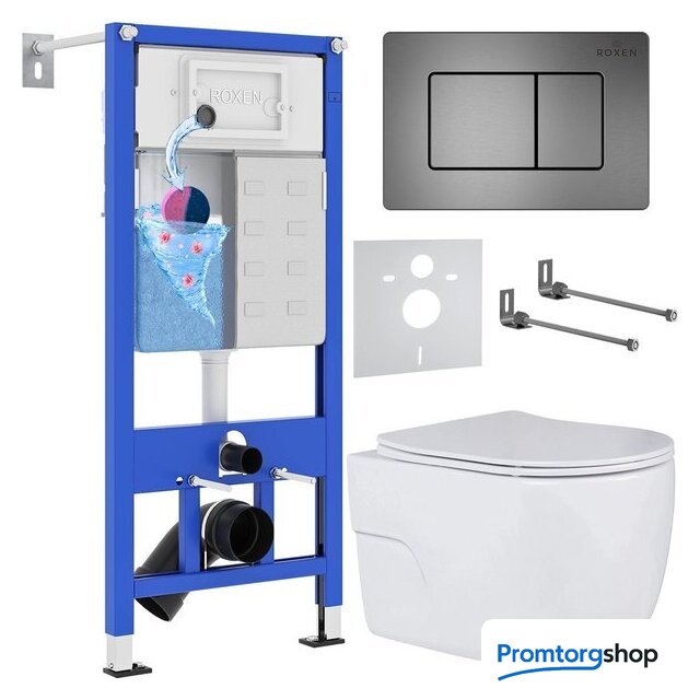 Унитазы Roxen Roxen Porto One Rimless 6 в 1 StounFix Dual Fresh 618703 (оружейная сталь/металл) Код товара: 9178451