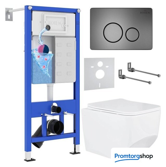 Унитазы Roxen Roxen Boro One Rimless 6 в 1 StounFix Dual Fresh 632475 (оружейная сталь/металл) Код товара: 9178434