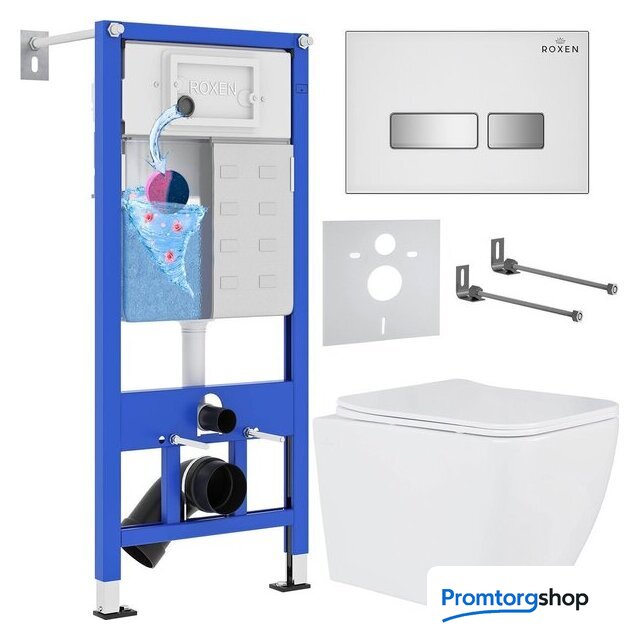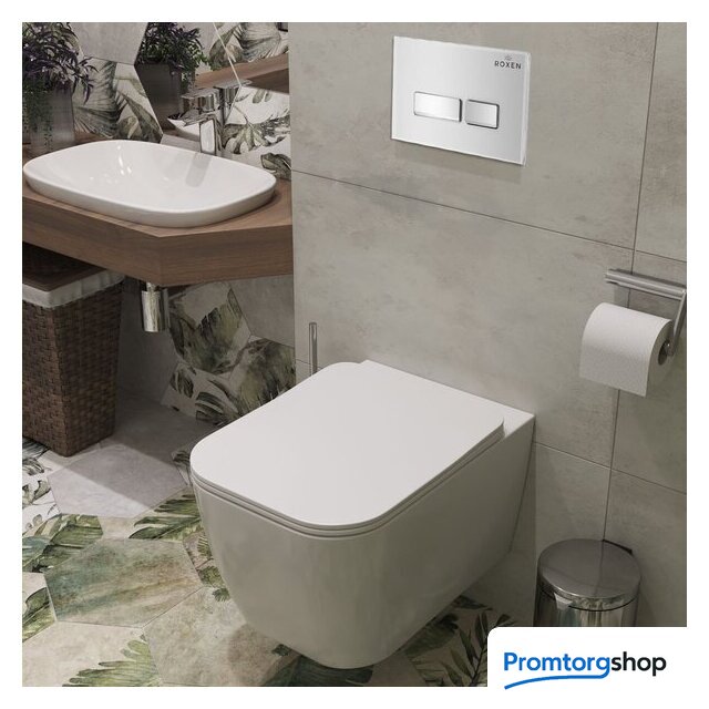 Унитазы Roxen Roxen Cube One Rimless 6 в 1 StounFix Dual Fresh 634687 (белое стекло) Код товара: 9178465