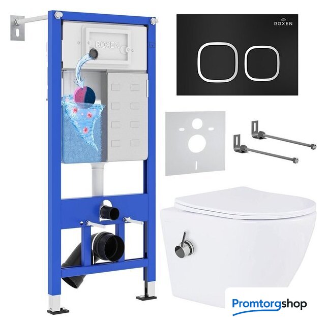 Унитазы Roxen Roxen Antares Bidet в комплекте с инсталляцией StounFix Dual Fresh 6 в 1 938621 (кнопка: черный матовый) Код товара: 9341635