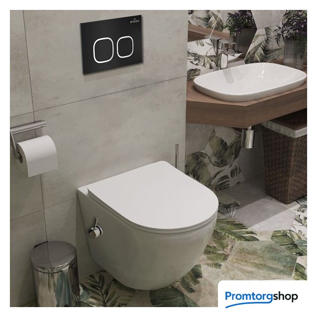 Унитаз подвесной Roxen Antares Bidet в комплекте с инсталляцией StounFix Dual Fresh 6 в 1 938621 (кнопка: черный матовый)