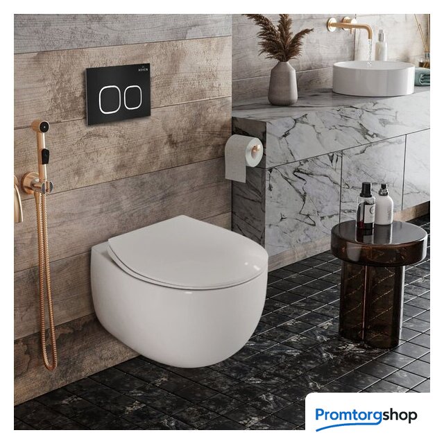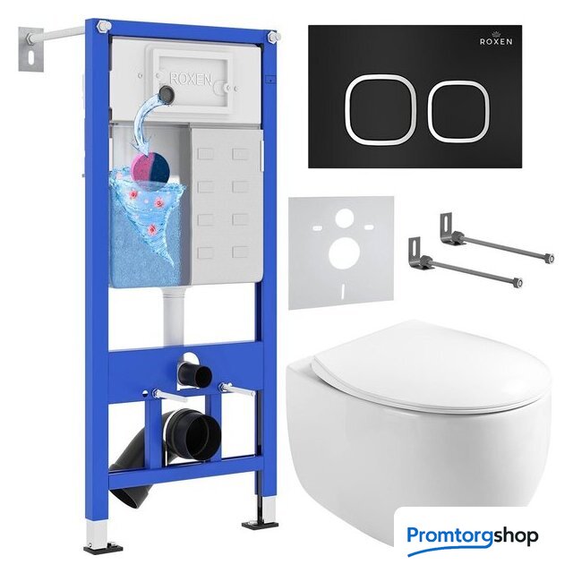 Унитазы Roxen Roxen Egg в комплекте с инсталляцией StounFix Dual Fresh 6 в 1 964079 (кнопка: черный матовый) Код товара: 9387341