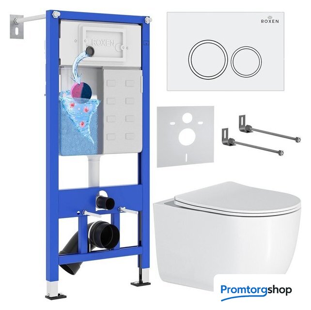 Унитазы Roxen Roxen Vortex Tornado в комплекте с инсталляцией StounFix Dual Fresh 6 в 1 964275 (кнопка: белый глянец) Код товара: 9387330