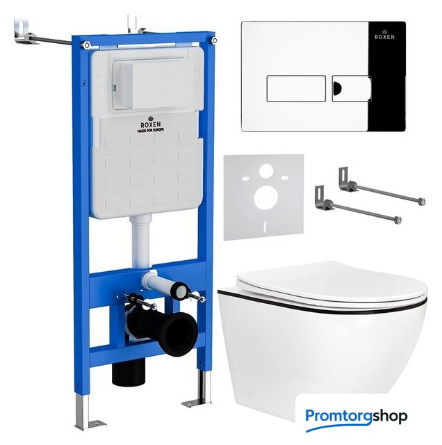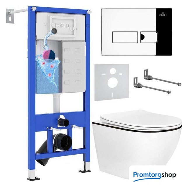 Унитазы Roxen Roxen Antares Black в комплекте с инсталляцией StounFix Dual Fresh 6 в 1 964772 (кнопка: хром глянец) Код товара: 9387305