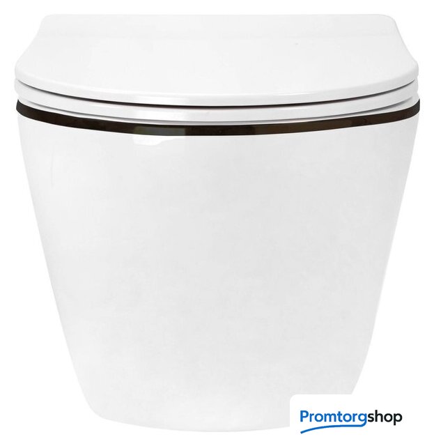 подвесной, конструкция: без бачка, задний подвод воды, горизонтальный выпуск, двухрежимный слив, с сиденьем, безободковый