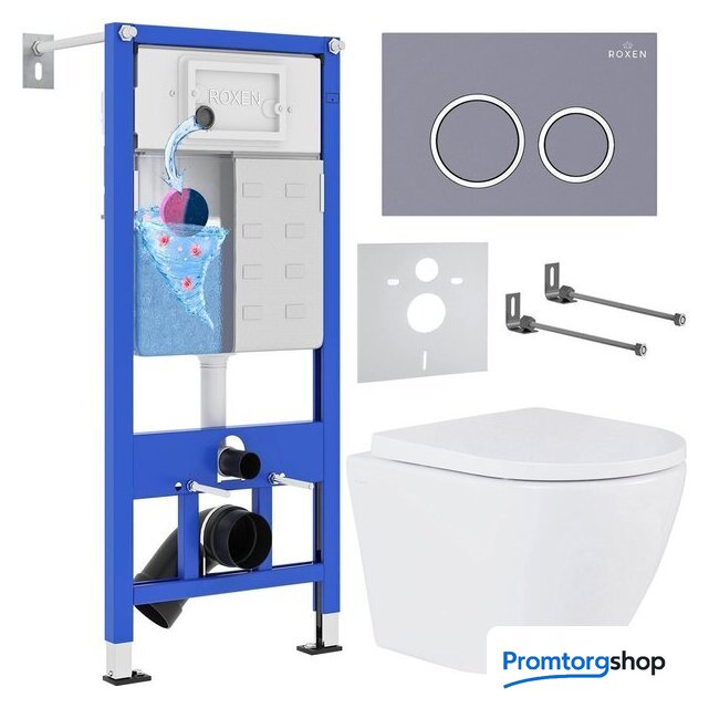 Унитазы Roxen Roxen Antares 530185-02 в комплекте с инсталляцией StounFix Dual Fresh 6 в 1 966055 (кнопка: серый бетон) Код товара: 9624292