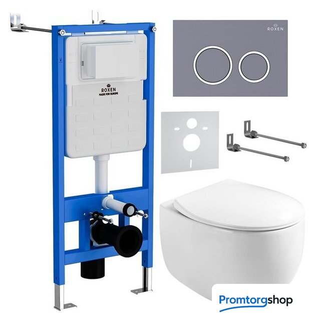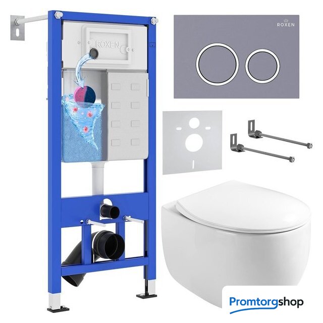 Унитазы Roxen Roxen Egg в комплекте с инсталляцией StounFix Dual Fresh 6 в 1 966160 (кнопка: серый бетон) Код товара: 9626173