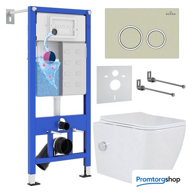 Унитазы Roxen Roxen Cube bidet в комплекте с инсталляцией StounFix Dual Fresh 6 в 1 966246 (кнопка: бежевый) Код товара: 9624285