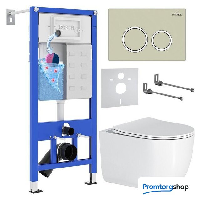 Унитазы Roxen Roxen Vortex в комплекте с инсталляцией StounFix Dual Fresh 6 в 1 966303 (кнопка: бежевый) Код товара: 9626162