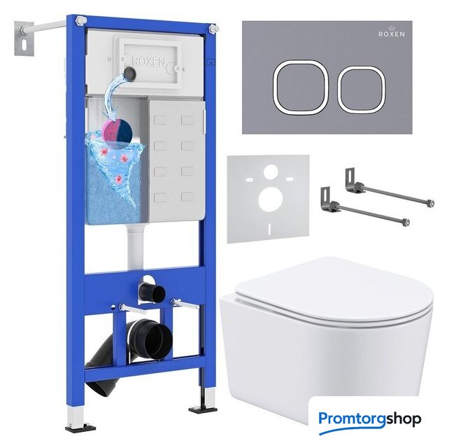 Унитазы Roxen Roxen Simple Compact в комплекте с инсталляцией StounFix Dual Fresh 6 в 1 966428 (кнопка: серый бетон) Код товара: 9626177