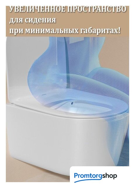 подвесной, конструкция: без бачка, задний подвод воды, горизонтальный выпуск, двухрежимный слив, с сиденьем, безободковый