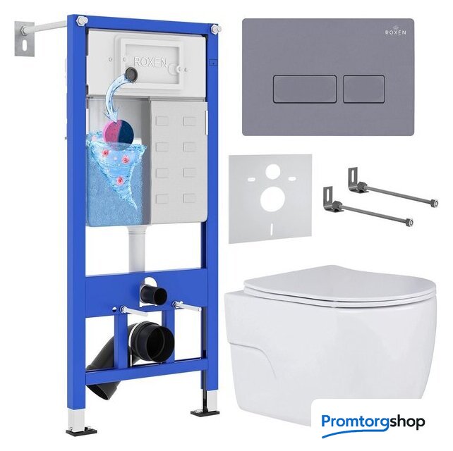 Унитазы Roxen Roxen Porto в комплекте с инсталляцией StounFix Dual Fresh 6 в 1 966779 (кнопка: серый гранит) Код товара: 9624269