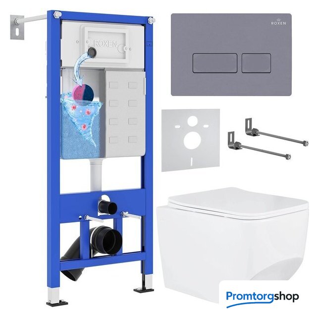 Унитазы Roxen Roxen Boro в комплекте с инсталляцией StounFix Dual Fresh 6 в 1 966786 (кнопка: серый гранит) Код товара: 9626180