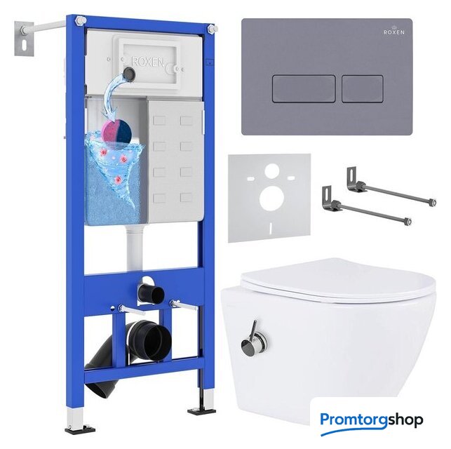 Унитазы Roxen Roxen Antares Bidet в комплекте с инсталляцией StounFix Dual Fresh 6 в 1 966821 (кнопка: серый гранит) Код товара: 9616614