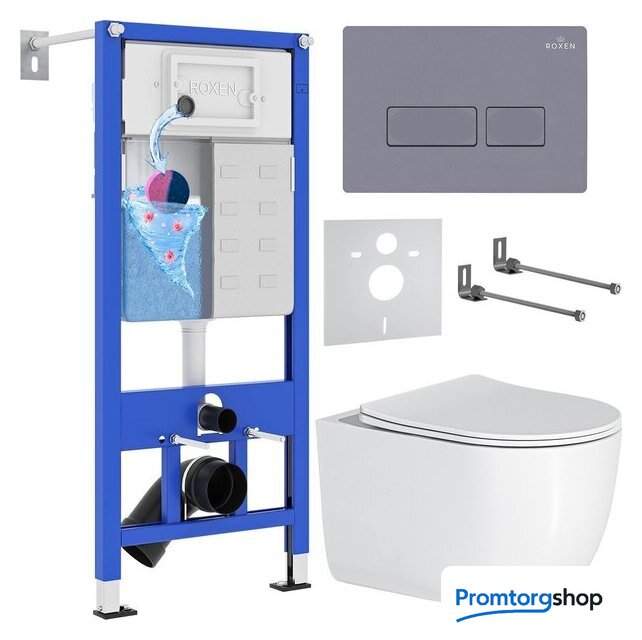 Унитаз подвесной Roxen Vortex в комплекте с инсталляцией StounFix Dual Fresh 6 в 1 966868 (кнопка: серый гранит)