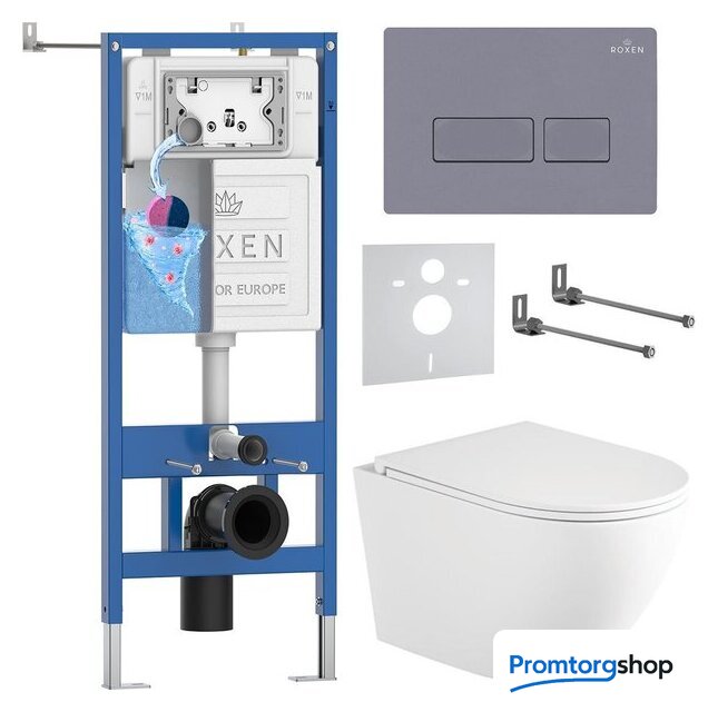 Унитазы Roxen Roxen Antares Tornado Long в комплекте с инсталляцией StounFix Dual Fresh 6 в 1 868417 (кнопка: серый бетон матовая) Код товара: 11595868