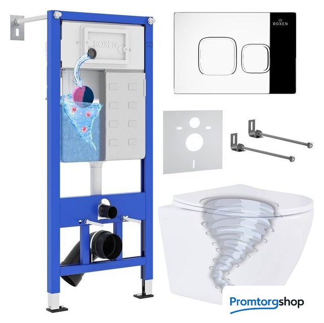 Унитазы Roxen Roxen Antares Tornado Long в комплекте с инсталляцией StounFix Dual Fresh 6 в 1 868434 (кнопка: хром глянцевый глянцевая) Код товара: 11595857
