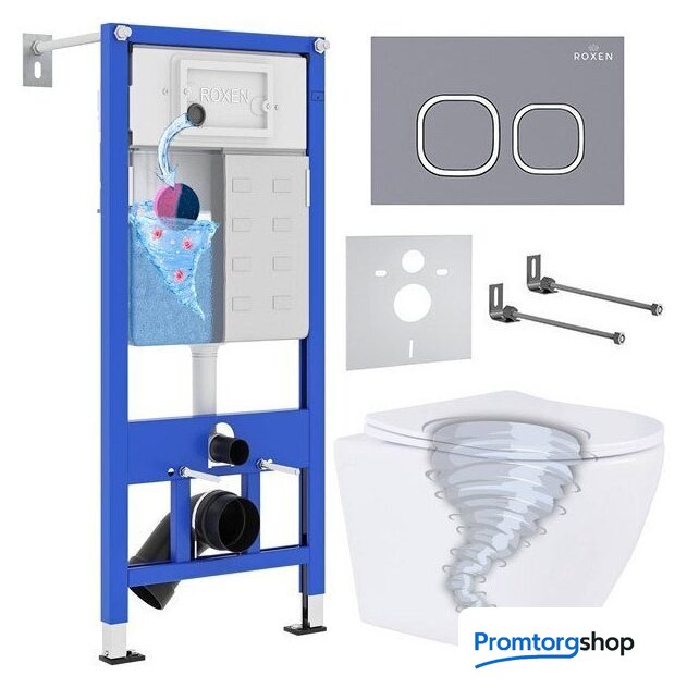 Унитазы Roxen Roxen Antares Tornado Long в комплекте с инсталляцией StounFix Dual Fresh 6 в 1 868438 (кнопка: серый бетон матовая) Код товара: 11595854